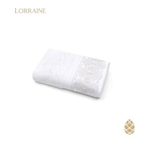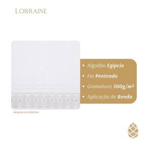 Toalha felpuda com aplicação de Renda Bordada. A delicadeza da renda aplicada na toalha confere ao produto um visual requintado.