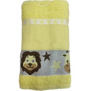 Características: Contém: 01 Toalha de Banho infantil. Barra: Ponto Cruz, para mandar bordar o nome. Composição: Tecido 100% Algodão, exceto efeito decorativo. Dimensão da Toalha: 70 cm x 110 cm. Cor: Amarelo Animais