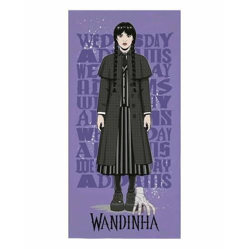 Toalha Infantil de Banho Wandinha Aveludada 70×1,40m Lepper Transforme o momento do banho ou da praia em um instante de alegria e conforto com esta toalha aveludada estampada da personagem Wandinha.Com medidas de 70 cm × 1,40 m, ela oferece o tamanho perfeito para envolver-se com leveza ou estender confortavelmente. Produzida em 55% algodão e 45% poliéster, e com gramatura de 280 g/m², combina absorção eficaz, toque macio e acabamento que seca rapidamente, ideal para uso diário ou como item estiloso de suplementação da rotina. Além disso, o tecido resistente evita que puxe fios, preservando a qualidade e a estampa por mais tempo. A estampa da icônica Wandinha sai do seriado e leva o universo pop-gótico para o banho ou lazer. Marca: LepperMedidas: 70 cm (largura) × 1,40 m (comprimento)Composição: 55% algodão / 45% poliéstesGramatura: 280 g/m²Características: tecido aveludado, secagem rápida, não puxa fio, toque macioEstampa: personagem Wandinha (Família Adams)Se você quer uma peça que una design temático + qualidade para o dia a dia, essa toalha é a escolha certa.Enrole-se no mistério estiloso da Wandinha e torne o banho num momento digno de série!