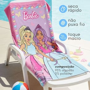 A Toalha de Banho Infantil Felpuda Barbie Reinos Mágicos Lepper transforma a hora do banho em um momento ainda mais especial. Com uma estampa encantadora, ela traz a Barbie em um universo mágico, com fadas, nuvens coloridas, unicórnio, borboletas e corações, deixando o dia a dia das crianças mais divertido.