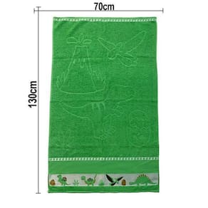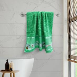 Características: Contém: 01 Toalha de Banho infantil. Barra: Ponto Cruz, para mandar bordar o nome. Composição: Tecido 100% Algodão, exceto efeito decorativo. Dimensão da Toalha: 70 cm x 110 cm. Cor: Verde Dino