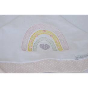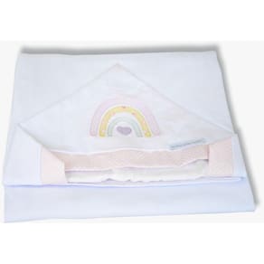 Hora do Banho , momento delicioso e refrescante. A toalha de Banho deve ser macia de preferência forrada com fralda , assim é a toalha da Minha Casa Baby, em malha forrada com fralda bem macia e de tamanho gigante envolvendo o corpo do bebe todinho na retirada do banho, sem que tenha mudanças bruscas de temperatura.Bordado a maquina dando um charme na peça - Arco IrisProduto confeccionado por nós com qualidade e carinho em malha 100% algodão .Medindo - 90 cm X 106 cm