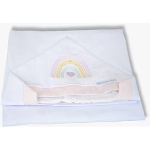 Hora do Banho , momento delicioso e refrescante. A toalha de Banho deve ser macia de preferência forrada com fralda , assim é a toalha da Minha Casa Baby, em malha forrada com fralda bem macia e de tamanho gigante envolvendo o corpo do bebe todinho na retirada do banho, sem que tenha mudanças bruscas de temperatura. Bordado a maquina dando um charme na peça - Arco Iris Produto confeccionado por nós com qualidade e carinho em malha 100% algodão . Medindo - 90 cm X 106 cm Ean: 7898506749270