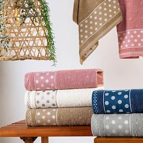 A toalha de banho Petit Poá é lindamente trabalhada em tecido 100% algodão, a gramatura 450gm2 conta com um padrão de desenho nas toalhas e um perfeito acabamento.