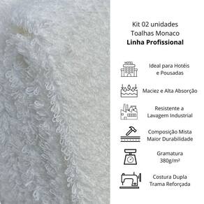 Cada kit contém 02 peças de toalhas de banho profiline Monaco, com medidas de 0,70x1,35m. Essas toalhas são brancas, garantindo um aspecto limpo e profissional para o seu estabelecimento.