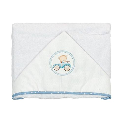 Toalha de Banho Recém Nascido 68 cm x 68 cm Bublim Sonhos - Urso Carrinho