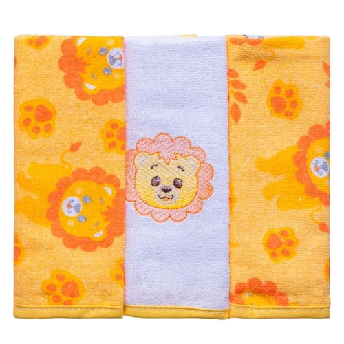 Toalha de Boca Estampada com Bordado 3 Unidades Baby Joy - Leão