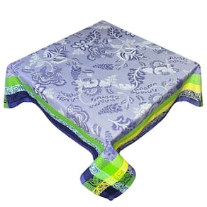 Toalha de chá Bella 1.00x1.00m, em tecido Jacquard 100% Algodão 210 gr/m2. Desenho floral com barra localizada. Pode ser usada como centro de mesa ou toalhinha de chá.