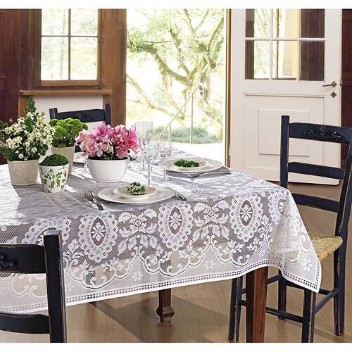 As toalhas de renda da Linha Mesa da Lepper Home são produzidas em poliéster de alta qualidade e durabilidade. Com a medida de 1,40m por 1,40m, esta toalha possui o tamanho ideal para mesas quadradas de 4 lugares. Na cor branca, apresenta uma linda estampa de característica clássica com detalhes em arabescos e folhas emoldurando brasões, conferindo um ar de requinte e sofisticação, perfeita para transformar as refeições do dia a dia em momentos especiais Informações básicas Marca: Lepper Referência: 35266 Características Contém: 1 toalha de mesa Composição: 100% poliéster Dimensões L x C : 1,40 x 1,40 m Para mesas quadradas de 4 lugares Especificações técnicas Marca: Não Informado Ean: 7891354006274