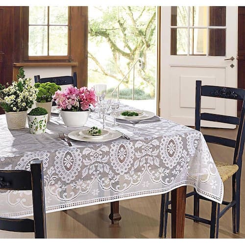 As toalhas de renda da Linha Mesa da Lepper Home são produzidas em poliéster de alta qualidade e durabilidade. Com a medida de 1,40m por 1,40m, esta toalha possui o tamanho ideal para mesas quadradas de 4 lugares. Na cor branca, apresenta uma linda estampa de característica clássica com detalhes em arabescos e folhas emoldurando brasões, conferindo um ar de requinte e sofisticação, perfeita para transformar as refeições do dia a dia em momentos especiais