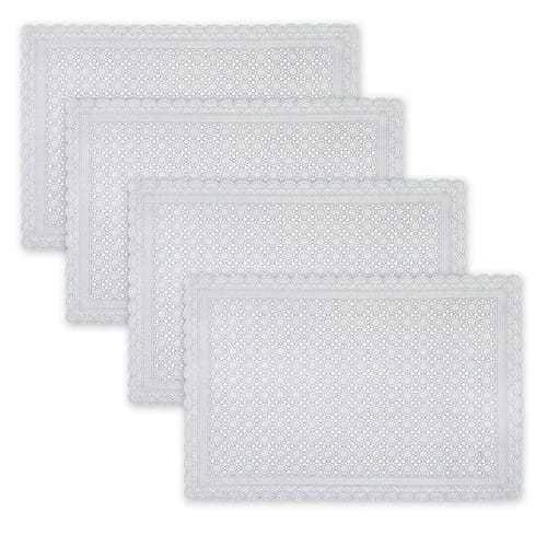 Toalha De Geladeira Pvc Rendado Kit 04 Pçs Pequenas Flores - Branco