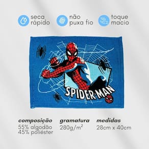 Toalha Lancheira Infantil Estampa Homem Aranha 28x40cm Lepper Dê ao lanche do seu pequeno um toque de super-herói com esta toalha de lancheira estampada do Spider-Man! Medindo 28 cm × 40 cm, ela é compacta, fácil de levar na mochila ou lancheira, e ainda oferece excelente qualidade: feita em composição 55% algodão e 45% poliéster, com gramatura de 280 g/m², garantindo toque macio, absorção eficaz, secagem rápida e resistência. Ela não puxa fio e mantém a estampa vibrante por mais tempo. A marca Lepper traz o universo dos personagens para o cotidiano das crianças, garantindo muita diversão na rotina do dia a dia. Ideal para a escola e passeios. Medidas: 28 cm × 40 cmComposição: 55% algodão / 45% poliésterGramatura: 280 g/m²Marca: LepperCaracterísticas: toque macio, secagem rápida, resistente, não puxa fio Indicação de uso: lancheira, mochila escolar, passeios, rotina infantil Convide o Spider-Man para o lanche e transforme esse momento em algo divertido, estiloso e muito prático, deixe o Homem Aranha proteger o lanche do seu mini-herói!