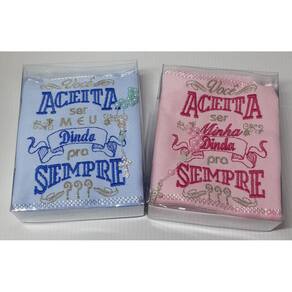 Kit composto por 2 toalhas bordadas + 2 tercinhos + caixa em acetato