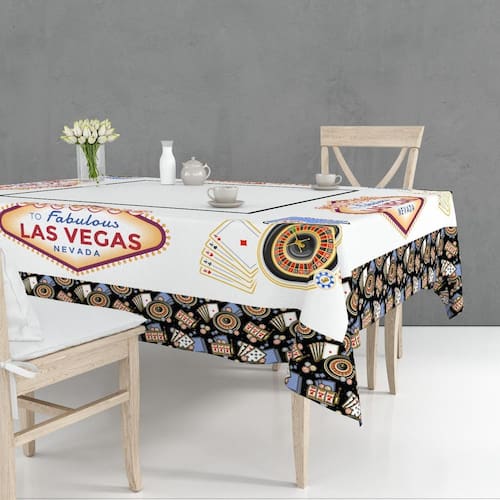 Apresentamos nossa coleção exclusiva de toalha de mesa inspirada nos jogos de cassinos de las vegas. Toalha com estampa inspirada em cartas de baralho e dados criam um visual único e audacioso. Deixe suas toalhas contar a história de um ambiente ousado e cheio de personalidade. Ao escolher nossa toalha temática de las vegas, você não apenas decora, mas também cria um ambiente de luxo e animação. Faça de cada dia uma celebração de estilo e sofisticação