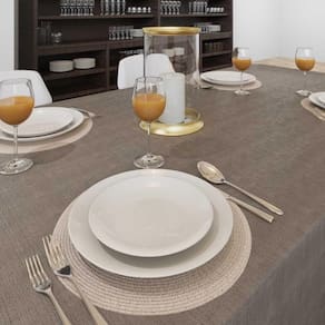 Toalha De Mesa Cinza Rústica Quadrada 1,80 X 1,80Perfeita para acrescentar elegância para sua decoração, a Toalha de Mesa Cinza Rústica Quadrada 1,80 x 1,80 deixa que sua textura e coloração decorem a sua mesa com a elegância que somente o estilo rústico pode transparecer. Fabricada em tecido rústico que deixa os entrelaçamentos dos fios aparentes, a toalha de mesa cinza rústica é resistente e super agradável ao toque. Possui composição formada por 65% Algodão e 35% Poliéster.