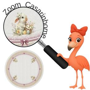 Ideal para almocos de Pascoa reunioes em familia ou decoracoes especiais a toalha combina facilmente com guardanapos caminhos de mesa e lugares americanos da mesma linha criando um visual equilibrado e encantador.
