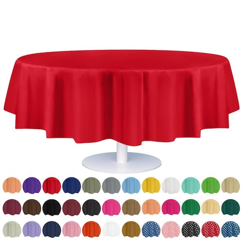 - Ajuste perfeito: toalha de mesa redonda de 213 cm descartável, cobre sua mesa redonda com perfeição. Você também pode cortá-la para caber em uma mesa menor. Econômico. Com toalhas de mesa resistentes ao desbotamento e rasgos, nossas capas de mesa redondas protegem facilmente suas mesas e móveis de arranhões, manchas e raios solares. Inspira um senso de estilo limpo em qualquer evento ou refeição que você esteja oferecendo com estas elegantes toalhas de mesa.