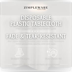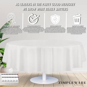 - Material de alta qualidade: nossa toalha de mesa de plástico branco descartável premium Zimpleware oferece a combinação perfeita de luxo e conveniência. Feita de plástico durável resistente ao desbotamento e rasgos, esta toalha de mesa de plástico branco redonda foi projetada para suportar derramamentos e manchas.