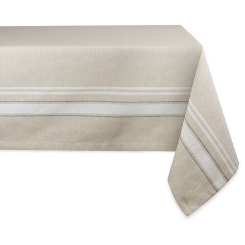 DII Coleção de mesa de jantar listrada francesa, toalha de mesa estilo casa de fazenda, 152 x 300 cm, acinzentado/branco