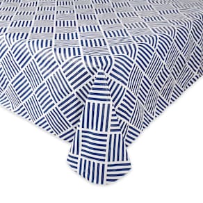 Coleção de mesa de vinil interior/externo DII Grid Pattern, toalha de mesa com encosto de flanela, retangular, 60x102, azul marinho