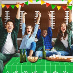 Toalha de mesa de plástico descartável para festa de futebol, suprimentos de decoração de festa; decoração de festa de futebol, suprimentos de festa super, 2025 - Design duplo para decoração versátil – Este pacote de toalha de mesa de futebol americano inclui duas toalhas de mesa atraentes, com um campo de futebol verde vibrante e design de padrão de futebol marrom. Adequado para decorações de mesa de futebol e pano de fundo de futebol também. Boa escolha para melhorar qualquer festa e celebração temática de futebol! - Tamanho generoso para a maioria das mesas: medindo 137 x 183 cm, estas capas de mesa de futebol servem para a maioria das mesas retangulares. Crie uma atmosfera festiva de futebol com facilidade! - Para várias ocasiões: ótimo toque como decoração de festa de futebol, artigos de festa de aniversário, decorações com tema esportivo, festa de draft de fantasia, celebração de formatura para crianças e adultos. Esta toalha de mesa de futebol adiciona um toque divertido que seus convidados vão adorar. Ótimo para uso interno e externo! - Durável e vibrante – Feita de materiais premium, nossa toalha de mesa de futebol é projetada para ser durável e resistente a rasgos. As estampas brilhantes e claras melhoram sua decoração enquanto proporcionam uma experiência memorável para você e seus convidados. - Fácil limpeza e proteção: feitas de plástico impermeável de alta qualidade, estas toalhas de mesa descartáveis protegem suas mesas de derramamentos, manchas e arranhões. Após a festa, basta enrolar a bagunça e jogá-la fora. Economizando seu tempo e complicações!