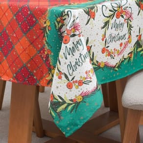 Toalha De Mesa Estampada Brilhare 1 Peça 1,45m X 1,45m 4 Lugares 100% Poliéster Tecido Oxford Natal - Estampa 2 Verde