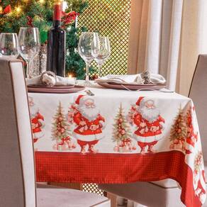 Toalha de Mesa Facile Natalina 10 Lugares 140x300cm 100% Poliéster Papai Noel -