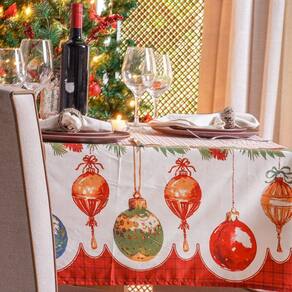Toalha de Mesa Facile Natalina 10 Lugares 140x300cm 100% Poliéster Bolas Laços -