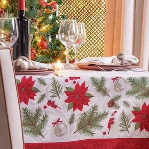 Toalha de Mesa Facile Natalina 6 Lugares 140x200cm 100% Poliéster Flor de Natal -