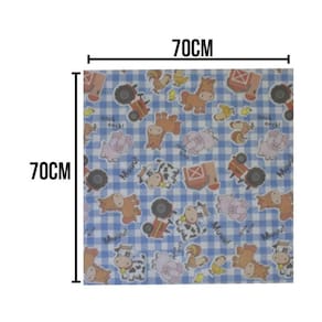A Toalha de Mesa Fazendinha Azul é a escolha ideal para quem deseja uma decoração temática de fazendinha de forma prática e encantadora. Com 5 unidades de toalhas descartáveis de tnt, cada uma medindo aproximadamente 70cm x 70cm, esse produto é perfeito para adornar a mesa dos convidados de sua festa.
