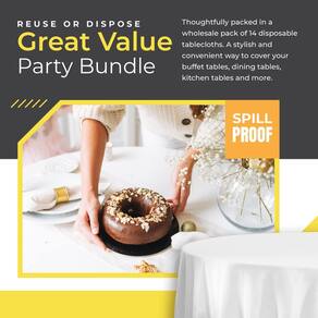 - Conjunto de festa de ótimo valor: cuidadosamente embalado em um pacote de 14 toalhas de mesa descartáveis com um tamanho perfeito de 137 x 274 cm, grande o suficiente para cobrir qualquer mesa retangular de até 2,4 m. Uma maneira elegante e conveniente de cobrir suas mesas de buffet, mesas de jantar, mesas de cozinha e muito mais.