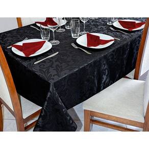 Toalha de Mesa Jacquard 06 Lug Cozinha Retangular Tecido Cor: Preto Toalha de Mesa de Jacquard com lindo desenho floral, peça moderna para eventos especiais em seu lar.