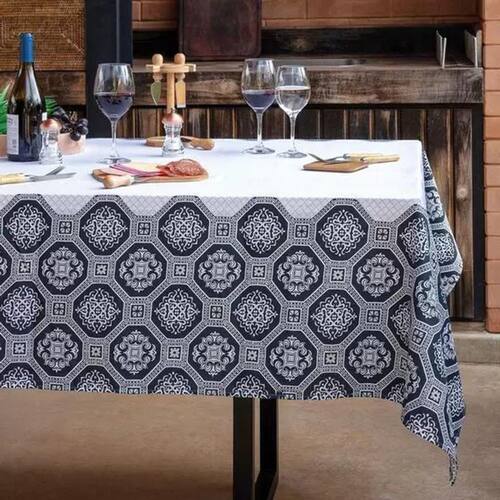 Toalha de mesa quadrada kacyumara limpa fácil iker 4 lugares 1,60m x 1,60m A toalha de mesa quadrada limpa fácil iker da kacyumara mede 1,60m x 1,60m, sendo ideal para mesas quadradas de 4 lugares. Confeccionada com mix de materiais resistentes e de qualidade, possui em sua composição algodão e poliéster. Prática e versátil, conta com tecido hidrorepelente, tecnologia limpa fácil que dá mais proteção para sua toalha.O modelo iker contém estampa de ornamentos em tons de preto nas laterais, com fundo claro que contrasta com seus detalhes. Já no tampo, possui padronagem em bege. Elegante e atemporal, é fácil de compor com outros elementos. A toalha de mesa quadrada limpa fácil iker é perfeita para quem gosta de funcionalidade, pode ser usada tanto no dia a dia, quanto em datas especiais para uma mesa posta mais elaborada.