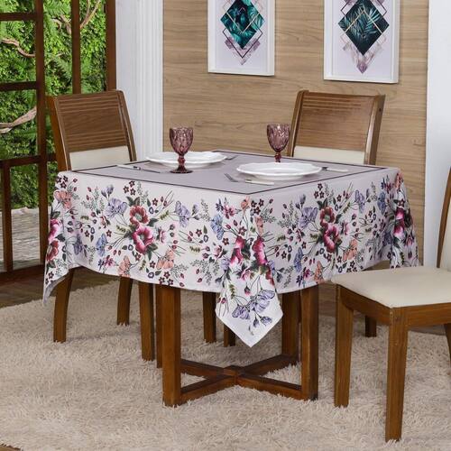Contem: 01- toalha de mesa quadrada 1,50 x 1,50 4 lugares Composição: 100% poliéster Tecido: poliéster