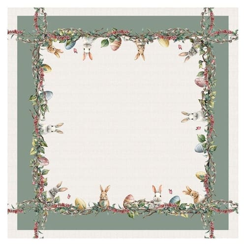 Toalha De Mesa De Pascoa 140x140cm Florescendo Momentos Magicos ATENÇÃO: As cores dos produtos podem sofrer variações em função das características do monitor e do ambiente durante sua visualização.