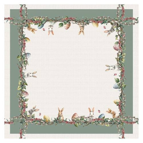 Toalha De Mesa De Pascoa 140x140cm Florescendo Momentos Magicos ATENÇÃO: As cores dos produtos podem sofrer variações em função das características do monitor e do ambiente durante sua visualização.