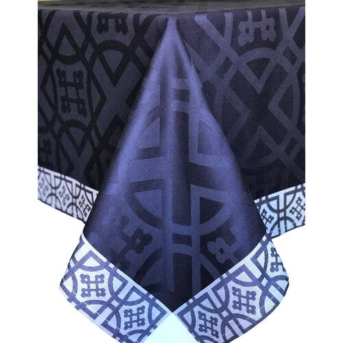 Toalha de mesa IDYLLE em Jacquard 100% Algodão com elegante desenho geométrico no cor azul marinho com branco. Possui tratamento anti-manchas e cores resistente aos lavagens.