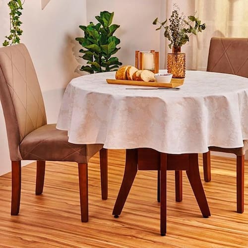 A toalha de mesa da coleção Lili é delicada e elegante. Une em sua estampa pequenas Flores e detalhes. Apresenta o jeito Lepper, com um tratamento especial no tecido, Que evita manchas e facilita a limpeza basta passar um pano sob a área , fazendo Com que ela permaneça limpa por muito mais tempo e tenha maior durabilidade. Ela Torna os momentos a mesa ainda mais especiais, mais leves, mais Lepper 80% algodão 20% poliéster Gramatura: 0,90g/m² 1,55 m Redonda 4 Lugares Imagem Meramente Ilustrativa
