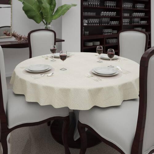 Toalha De Mesa Redonda Creme Rústica 1,80 De DiâmetroA Toalha de Mesa Redonda Creme Rústica 1,80 de diâmetro insere uma tonalidade que combina as mais elegantes decorações. Fabricada em ótimo tecido rústico. Esta toalha de mesa creme possui um belo material duradouro com tramas fortes em tecido rústico com a composição formada por 65% algodão e 35% poliéster.