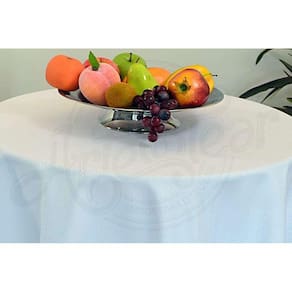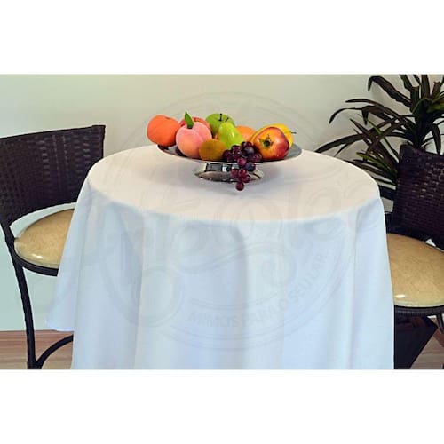 Toalha de mesa em tecido oxford liso, 100% poliéster, na cor branca, com acabamento em bainha em todas as laterais.