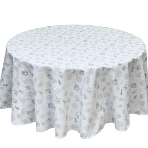 Toalha natalina Redonda Enfeites de Natal produzida em Jacquard europeu de alta qualidade. Desenho com lurex prateado. Tudo para deixar a sua ceia de natal deslumbrante e encantadora Contém: 1 toalha de mesa redonda Marca: Portocale Home Ean: 7897490278711