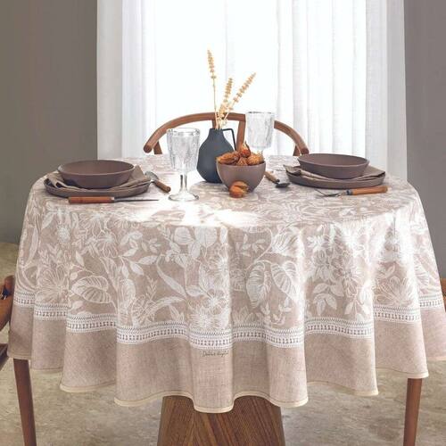 Tecido: Misto algodão e poliéster, proporcionando maciez e durabilidade.Acabamento: Döhler Clean, resistente a manchas e fácil de limpar.Design: Elegante e atemporal, se adapta a diversos estilos de decoração.Tamanho: 180 cm de diametro, ideal para mesas redondas.Versatilidade: Perfeita para o dia a dia e ocasiões especiais.-Instruções de Conservação: