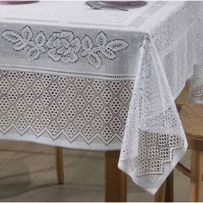 Toalha De Mesa Retangular Branca 06 Lugares Renda Flores