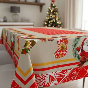 Toalha de Mesa Retangular 140x210 Rustica Linhão Natal Papai Noel