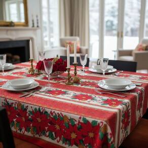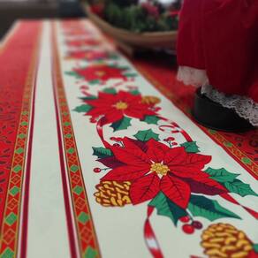 Toalha de Mesa Retangular150x220 Natal Flores Tecido Oxford 100% Poliester