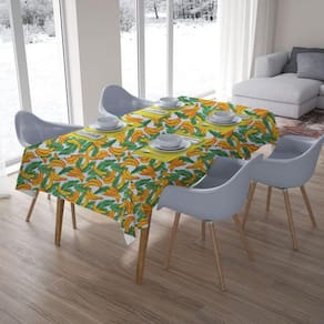 Toalha de mesa retangular 8 lugares bananas Mesa Chiq A toalha de mesa retangular 8 lugares bananas tropicais enche de cor e alegria a sua mesa. Afinal, uma estampa tão extrovertida assim sempre chama atenção no ambiente. Uma toalha de mesa que estampa uma das frutas mais populares do brasil agora com charme e delicadeza na coleção mesa chiq. Combinações Bananas estampam toda extensão da toalha de mesa retangular 8 lugares bananas tropicais. Inegavelmente uma toalha de mesa com a cara do nosso país. São ótimas para serem combinadas com itens de decoração amarelos. Todavia, nada impede que sejam utilizadas outra cores. A estampa presente nesta toalha de mesa contrasta muito bem inúmeras cores e tons. Detalhes da toalha de mesa A toalha de mesa retangular 8 lugares bananas tropicais foi fabricada em 100% algodão. Trata-se de um material leve, natural e ideal para produção de toalhas de mesa, guardanapos e outros itens que constantemente são colocados em máquinas de lavar. O tamanho é ideal para mesas de 8 lugares. As medidas são: 1,40 x 2,20 e o seu formato é retangular. A cor predominante é branco com detalhes em amarelo e verde. Nosso compromisso é com a sua satisfação nas compras realizadas em nosso site. Portanto, todos os produtos da Mesa Chiq esta toalha de mesa possuem garantias de troca. O cliente tem até 30 dias para poder entrar em contato caso haja algum arrependimento ou 90 dias a respeito de defeito no material. Observar que pode ocorrer variação na tonalidade das fotos em relação á toalha de mesa . Adornos e acessórios apresentados nas fotos não inclusos no produto. Ficha técnica - Largura: 1,40 - Tamanho: 8 Lugares - Material: Algodão 100% - Marca: Mesa Chiq - Comprimento: 2,20 - Forma: Retangular - Unidades por pacote: 1 - Cor: Branco e Amarelo Marca: Não Informado