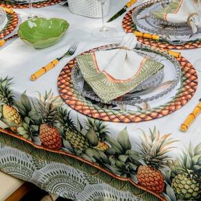 Marca: Design exclusivo Belchior Ambiente Principal: Sala de Jantar Composição: 100%POLIESTER Comprimento: 270 cm Cor: Abacaxi Cor do Produto: Abacaxi Itens Inclusos: 1 Largura: 140 cm Linha ou Coleção: Linha Tropicalia Marca: Belchior Material Principal: Poliéster Origem do Produto: Nacional Possui Bordado: Não Possui Renda: Não Profissional: Sim Quantidade de Lugares: 08 Lugares Quantidade de Peças: 01 Peça Recomendações de Uso, Manutenção e Limpeza: Recomendado para eventos, jantares e almoços especiais. Para maior durabilidade da peça recomenda-se uma lavagem delicada. Tema da Estampa: Abacaxi Tipo da Mesa: Retangular Tipo de Tecido: Tradicional