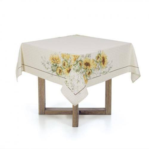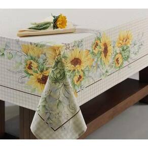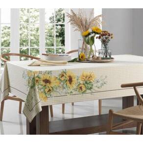 Toalha De Mesa Sempre Limpa Karsten Flor Do Sol Quadrada 140X140 Toalha de mesa Karsten Flor do Sol possui tom neutro e estampa com lindos girassóis, seu tecido é confeccionado 100% algodão com qualidade e ótimo caimento, confere casualidade e beleza para a mesa O acabamento que você já conhece, agora presente em três famílias: Sempre Limpa Jacquard, Sempre Limpa Extra e Sempre Limpa, que trazem consigo opções de tamanhos e estampas diferenciadas. Toalhas de mesa para quem não abre mão de ter uma casa linda e convidativa. Sempre Limpa é sinônimo de praticidade. Basta um pano úmido e a toalha volta a ficar impecável. O tratamento aplicado aos fios protege as fibras do tecido, impedindo a ação de manchas e resíduos oleosos, permitindo que o produto seja lavado com menos frequência. Para conservar a toalha limpa por mais tempo, remova o causador da mancha no mesmo momento com um pano úmido.
