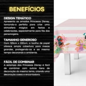 Conteúdo da Embalagem: 1 Toalha de Papel Princesas Disney 120cm x 220cm
