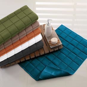 A dica é escolher itens confeccionados em 100% algodão e que possuam gramatura mais alta para que haja melhor absorção da água. Segurança também deve ser uma prioridade, ainda mais se houver crianças ou pessoas com mais idade no lar.